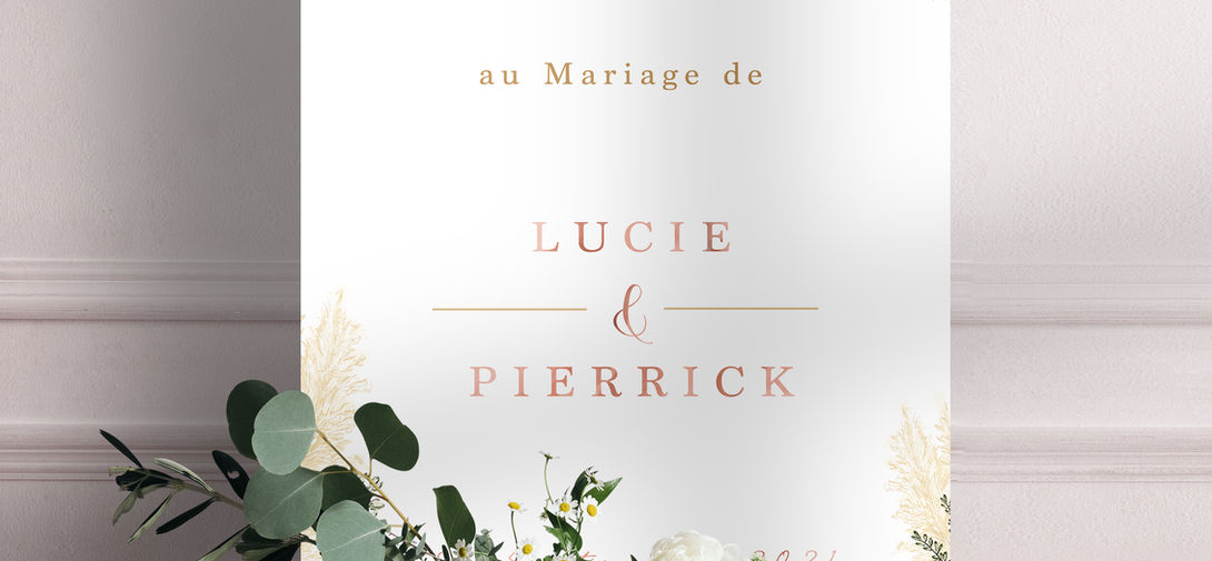 Je crée votre affiche d’après le design de votre faire-part. Un PDF vous est envoyé au format CMJN (coloris impression) et vous pouvez l'imprimer dans la taille de votre choix, chez l'imprimeur de votre choix.